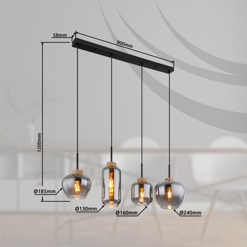 Lampa vysí max 120 cm do miestnosti má štyri objímky E27 (s maximálnym výkonom 40 wattov), ktoré umožňujú ľubovoľný výber svietidiel. Vzhľadom na ich dlhú životnosť a úsporu energie odporúčame LED žiarovky. Toto závesné svietidlo je ideálne do vašej obývačky a jedálne.