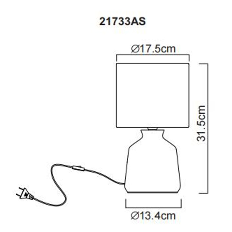Keramické telo s popolavou povrchovou úpravou harmonicky dopĺňa celkový vzhľad a vytvára štýlový vzhľad. Kolískový spínač na kábli umožňuje jednoduché ovládanie a poskytuje dodatočné pohodlie v každodennom živote. Priemer svietidla je 175 mm. Objímka E14 ponúka flexibilitu pri výbere svetelného zdroja. Žiarovka nie je súčasťou balenia. Stolové svietidlo RELA je ideálne do každej miestnosti.